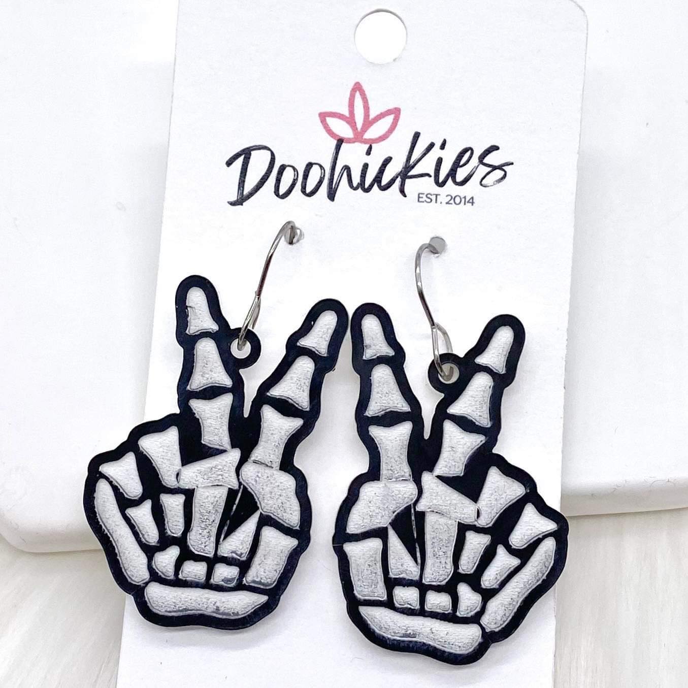 2" Peace Out Engraved Skeleton Acrylics - Halloween Earrings