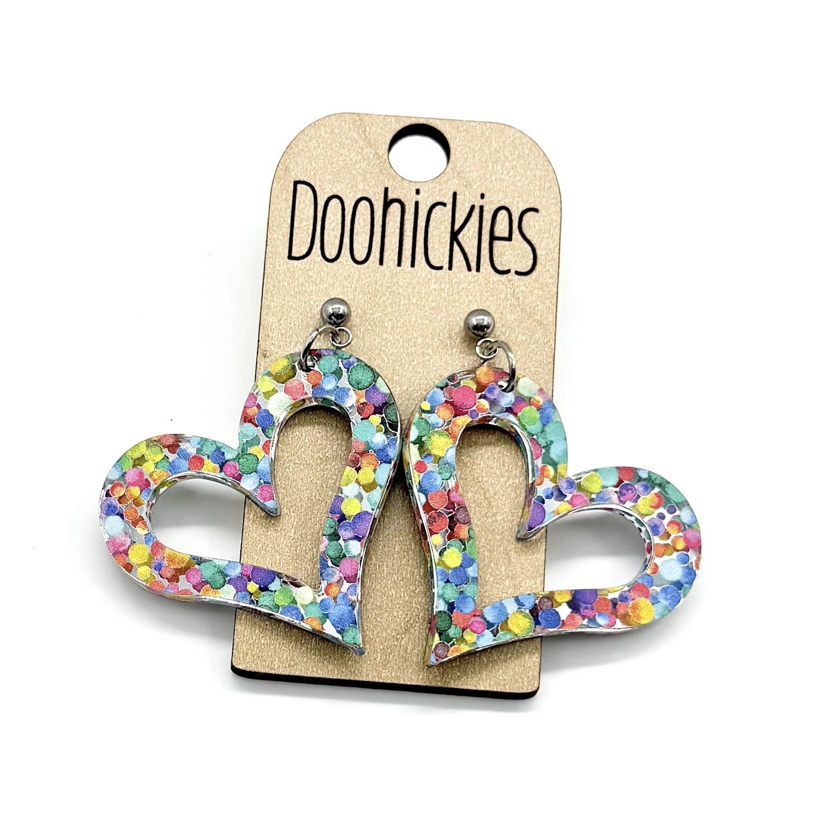 Bright Confetti Dot Cutout Heart Dangles - Valentines Earrings
