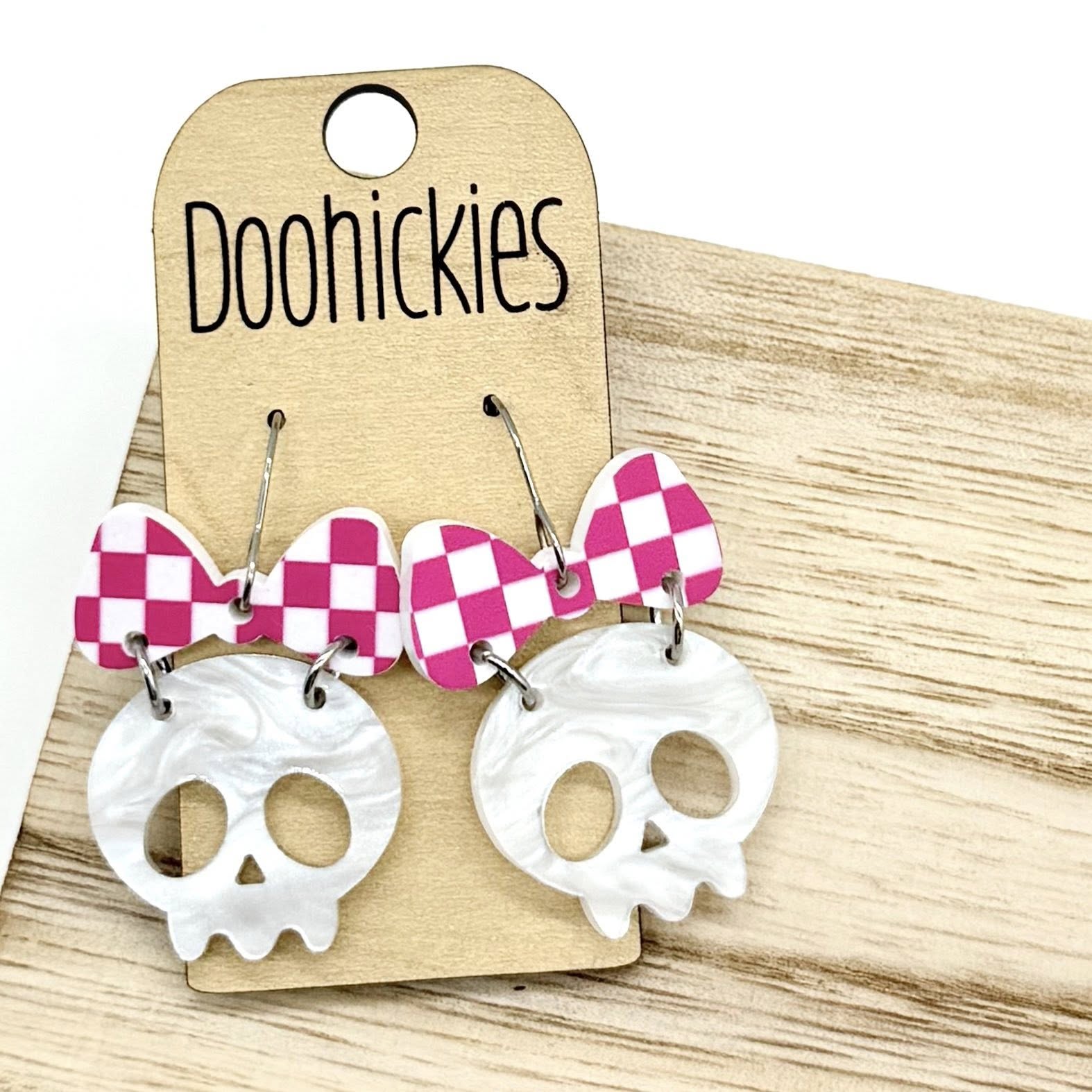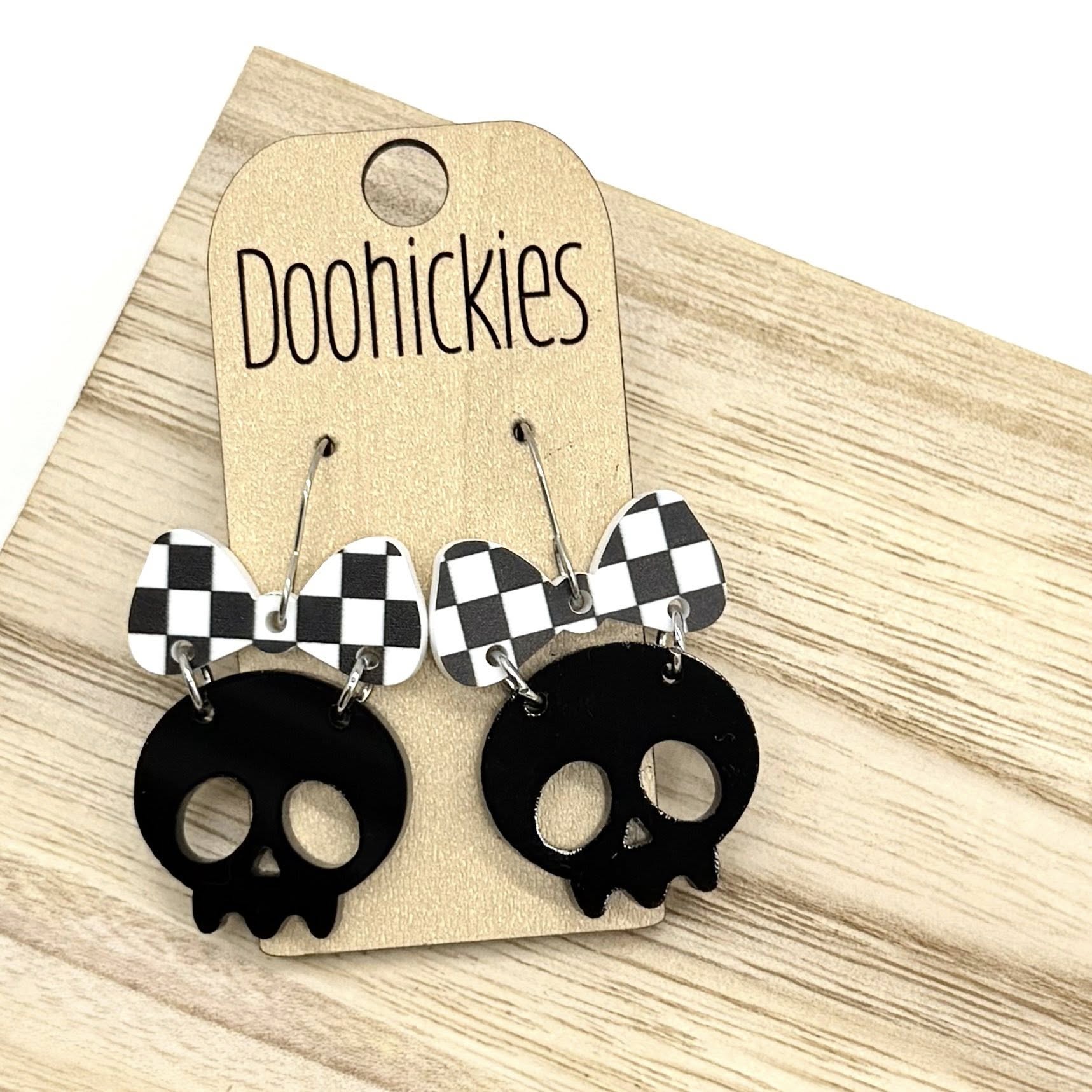 Checkered Bow Skull Dangle Collection - Halloween Earrings