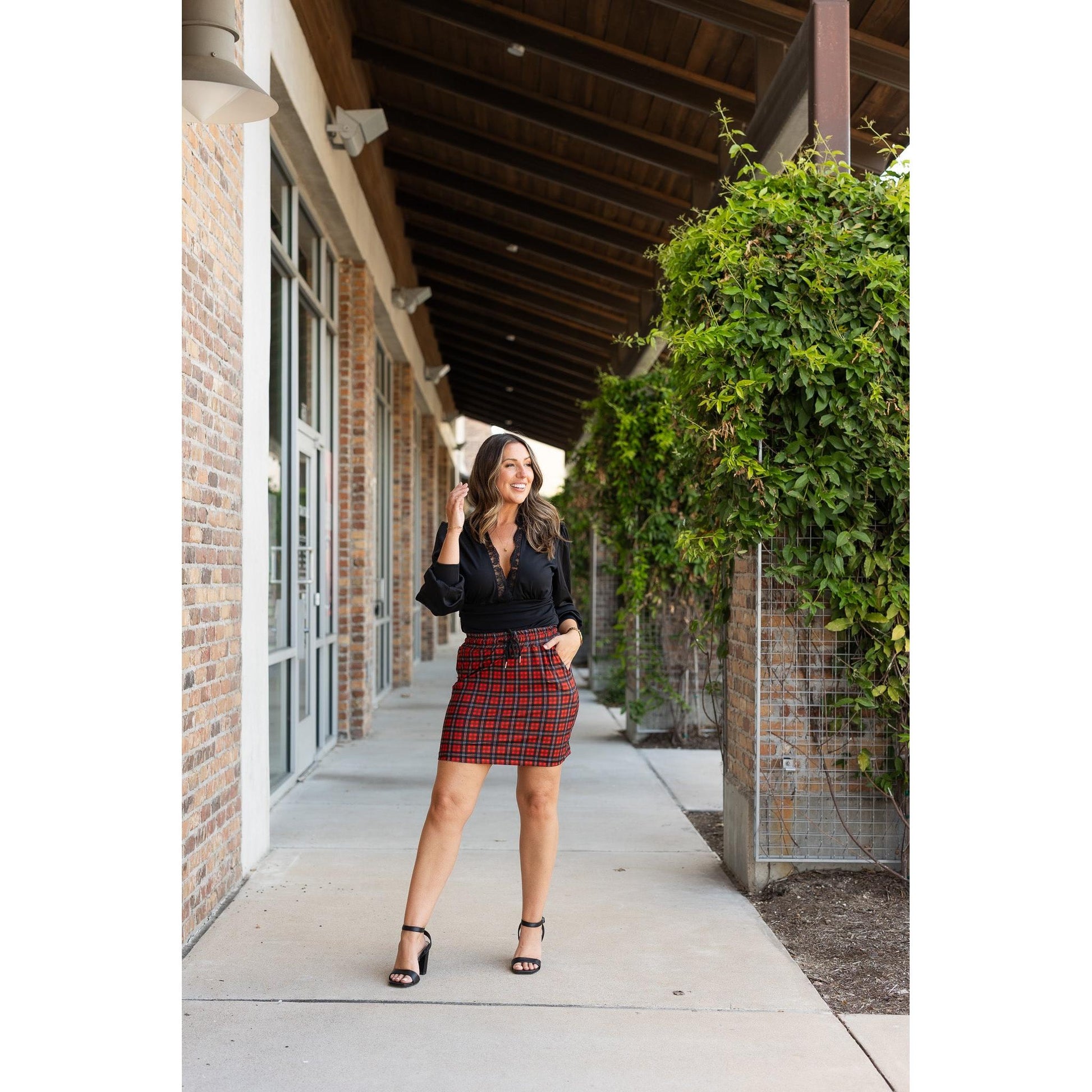Ready to Ship | The Helena - Red Plaid Jogger Skirt