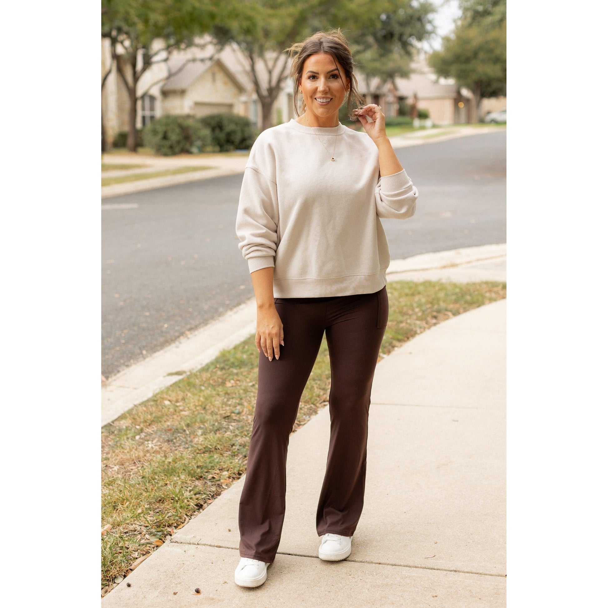 Ready to Ship | The Rhea - BROWN Bootcut Leggings with Pockets