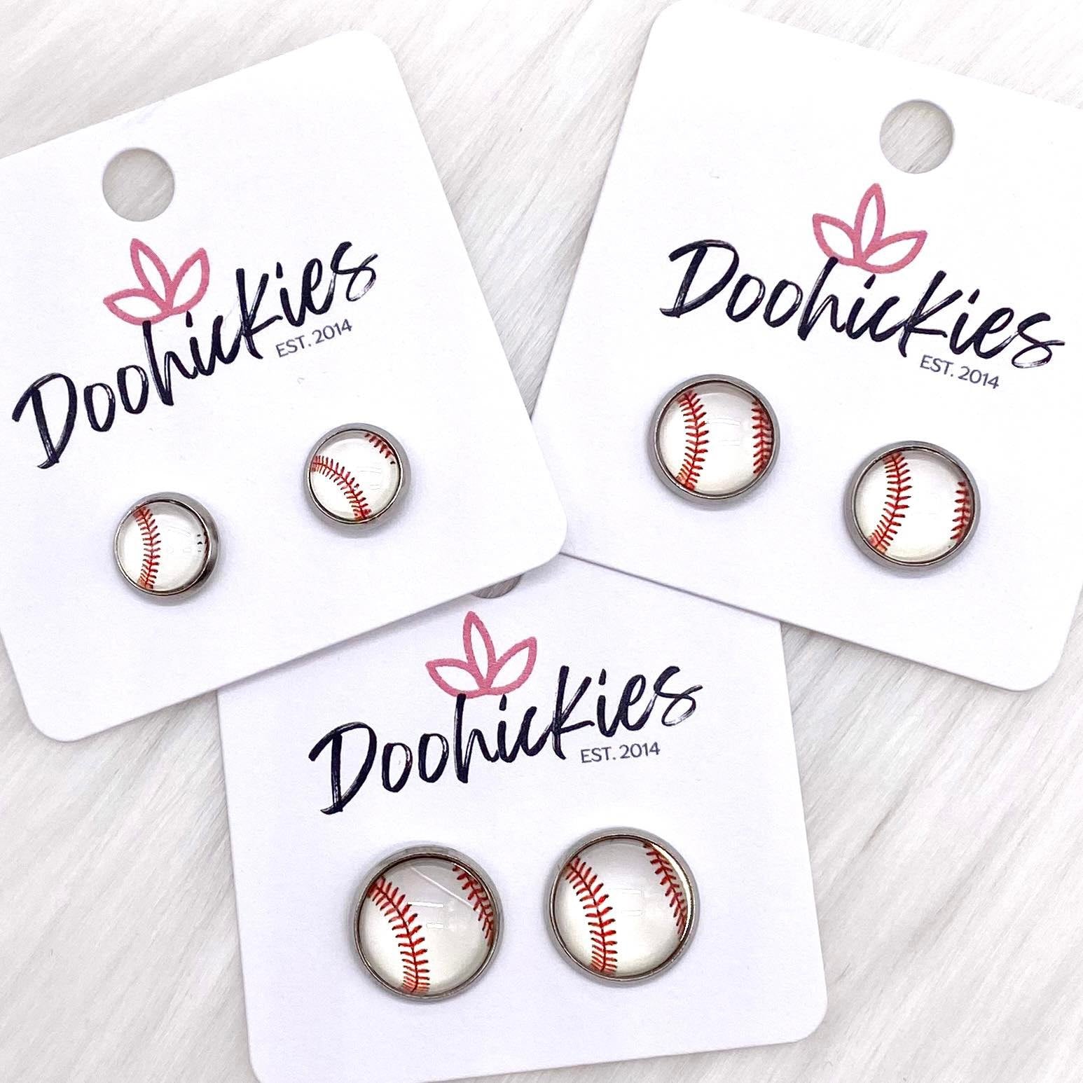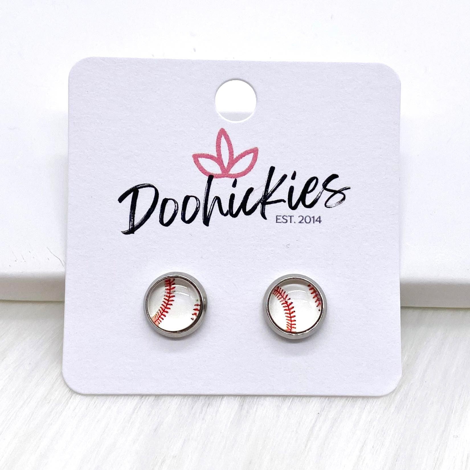 Vintage Baseball in Stainless Steel Settings -Sports Earrings